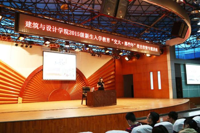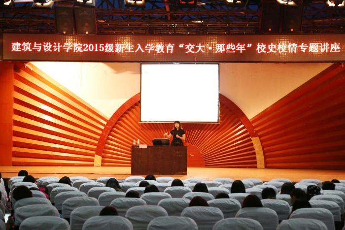2015年9月17日晚7点,建筑与设计公司在二食堂三楼进行了2015级新生入学专题教育“交大那些年”校史校情专题讲座。太阳成集团tyc7111cc档案馆校史办崔啸晨老师担任主讲。建筑与设计公司设计类辅导员曾宁莎作为嘉宾出席了此次讲座。