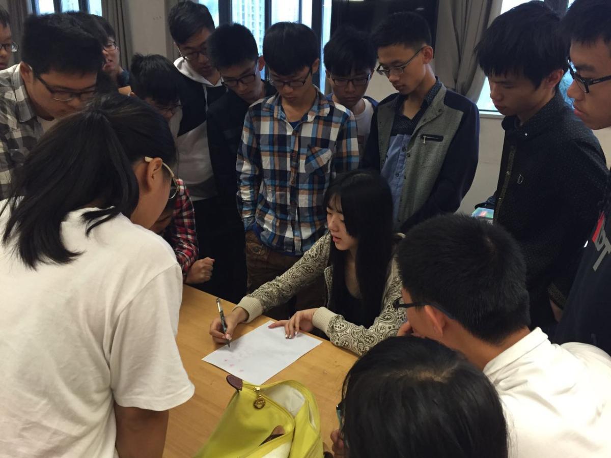 党员服务队朋辈导师李烨晴同学在晚自习时与新生分享学习经验