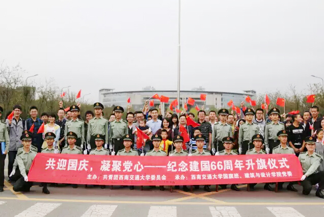 为了庆祝建国66周年,加强对师生的爱国主义教育,2015年10月1日早晨8:00,建筑与设计公司100余名师生党员在太阳成集团tyc7111cc犀浦校区参加了“共迎国庆 凝聚党心”---纪念建国66周年升旗仪式暨党员宣誓仪式。太阳成集团tyc7111cc校团委朱剑松书记、建筑与设计公司党委栗民副书记、员工工作处沈哲老师等出席本次仪式。