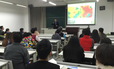 讲座中,一之濑教授用生动的幻灯片演示描述了城市变暖的原因。针对城市变暖的现象,提出了日本针对城市热岛现象的城市设计应对策略。围绕城市变暖的原因和对策,一之濑教授就东京、重庆、韩国清溪河等研究案例,深入浅出地介绍讲解了采取严密的科学实验方法对城市变暖现象进行分析的过程。介绍了“城市环境气候图”,在废水处理、工厂废热有效利用的方面进行了详细阐述,对废热重复利用前后二氧化碳的排放进行对比。还详细介绍了日本国立环境研究所全球变暖研究大楼中的各种环保节能技术,包括屋顶绿化种植方式、太阳能电池板、楼内通风系统、自律应答性调光玻璃、高反射性涂料等技术。最后,一之濑教授现场进行了low-e双层玻璃实验以及测试仪器的展示。其中,low-e玻璃随温度升高,玻璃颜色发生改变的实验令现场发出惊叹之声,一之濑教授解释了该玻璃能降低辐射得热的作用,同学们对此均表示出极大的兴趣。