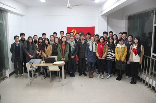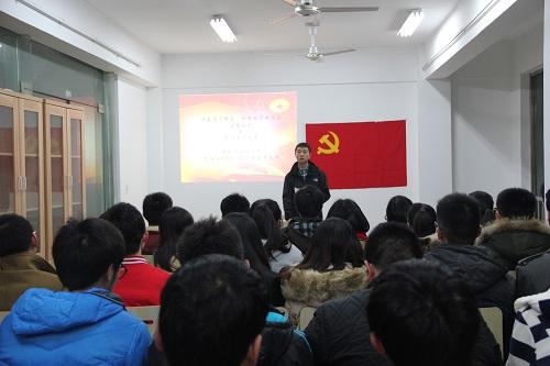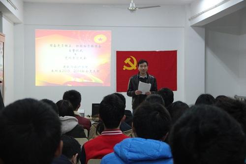 集中学习《准则》和《条例》之后,段玉全老师谈了党支部开展好支部活动及党内生活的重要性及重要意义,介绍了预备党员转正、积极分子发展为预备党员的程序、需要注意的问题。要求同学们要时刻以一名优秀党员的标准严格要求自己,谨记入党誓词、牢记历史使命,要有党员意识、责任意识、先锋意识、服务意识,在专业学习上带头提高,热心服务同学。随后,2013级党支部苏映彰主持党员发展及转正环节,12名预备党员逐个宣读入党申请书,对预备期内自己的工作、思想、学习等情况做出总结,并正确认识了自己的缺点与不足。预备党员们表示,以后会以一名优秀共产党员的标准严格要求自己,在学习和生活中保持先进心,迸发出青年的所有热情去迎接每一次的挑战。17名积极分子也分别作了简短介绍,党内同志认真倾听,给予诚恳建议。