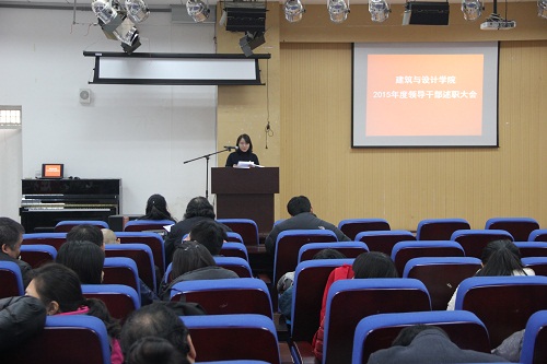 12月24日下午,建筑与设计公司在学术报告厅召开了2015年度领导干部述职述廉及民主测评大会。会上领导班子成员依次结合工作实绩从德、能、勤、绩、廉及学习贯彻及《中国共产党廉洁自律准则》、《中国共产党纪律处分条例》等方面的现实表现进行了全面自评。公司沈中伟经理、公司党委栗民副书记等全体全领导及公司教职工参加了本次大会,公司党委组织部组织科副科长王婉参加了会议,并进行了督导。