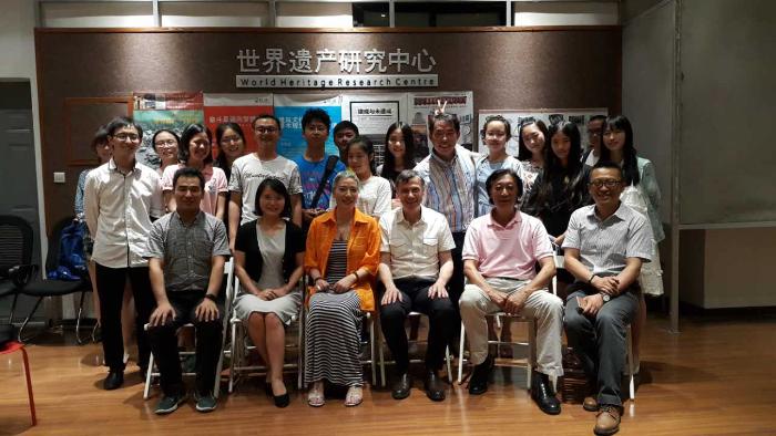 6月6日讲座后,彼纳斯先生在公司世界遗产国际研究中心与部分师生开展了面对面的交流。作为无神论者,彼纳斯先生从哥特建筑作为切入点,与同学们探讨了宗教建筑的环境感染力,介绍了当代欧洲社会,更多地以文化传统而不是灵魂信仰来看待宗教的实际情况,鲜明否定了“欧洲人基本都信仰基督教”的误解,对当前在东亚地区所谓“基督教”的传播模式和动机提出了质疑。刘弘涛老师介绍了遗产中心近期主要的学术研究工作,双方就合作开展传统聚落的调查研究,进行了技术性讨论。