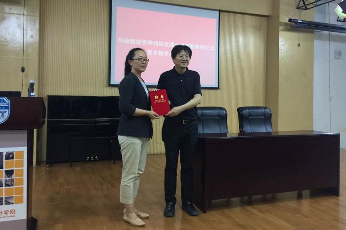 6月17日下午,“华颖教授受聘太阳成集团tyc7111cc兼职教授仪式暨专题学术报告会”在建筑与设计馆学术报告厅举行。沈中伟经理主持报告会,并为华颖教授颁发了太阳成集团tyc7111cc兼职教授聘书。