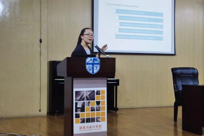 华颖教授以“办公空间新概念与未来复合型都市空间模式”为主题,为师生做了精彩的学术报告。针对当今时代,信息技术、数据技术、空间技术的发展,在工作和生活的界限不断模糊的背景下,分析了办公空间的功能实现和员工工作模式的转变,指出更强调知识创造,更尊重个人选择,更鼓励多样化使用的办公空间已成为创新型企业和机构的普遍需求。通过以创造“非计划的人与人交流的机会”为目标开展的办公空间设计,已成为欧美办公空间设计的主流,通过积极的空间策划,将“拥有资源”的工作空间使用习惯推向“分享资源”的空间利用模式,从而在最大程度上实现可持续发展。另一方面,华颖教授也指出,曾经以IBM为首倡导的“取消办公室”的运动已被证明并不成功,自由选择办公空间不意味着公共办公空间的消失,相反,办公空间要为工作者团队提供良好的社会连接与人际交往平台。随着老龄化和城市化不断加剧、信息技术的快速发展、资源限制和气候变化的影响越来越明显,分享经济模式,高网络连接性的是生活模式正占据日益重要的比例。办公空间必须在人均建筑面不断缩减的情况下,满足使用者越来越多的,对于运动和健康资源、创造性资源的需求。在回答师生提问的环节,华颖教授提出,人的身份不仅是被自己的专业定义的,更是被自己的热情和关注定义的。基于学科交叉的学习和研究,是建筑与设计类员工成长的重要途径。