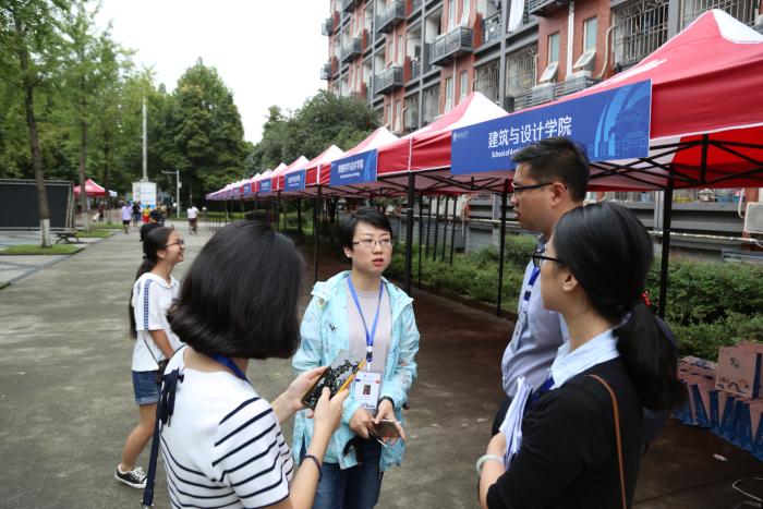 8月29日早上7:00,风雨骤停,阳光和煦,建筑与设计公司的迎新志愿者积极地布置迎新场地,开始了一天的迎新工作。上午8:30,公司迎来了艺术类第一位新生,迎新工作井然有序地推进。