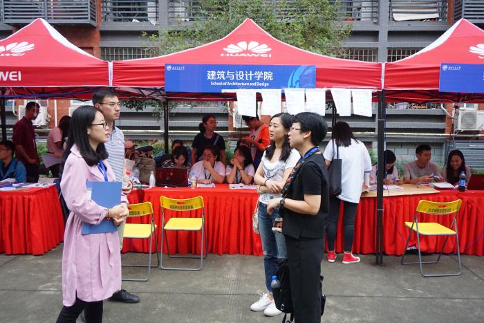 8月30日下午,凉爽的空气中夹杂着些许雨丝,建筑与设计公司的迎新工作在有条不紊地进行着。