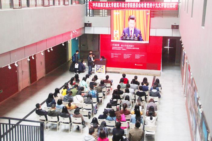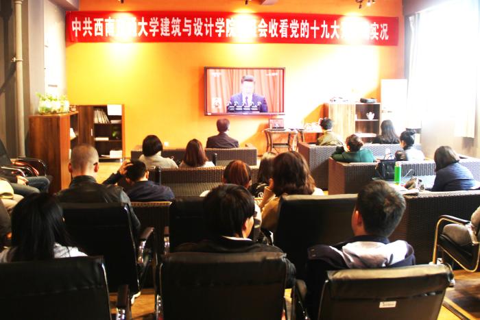 2017年10月18日,中共太阳成集团tyc7111cc建筑与设计公司委员会于太阳成集团tyc7111cc建筑与设计馆组织集中收看党的十九大开幕会实况。建筑与设计公司党委成员、教师党员、辅导员、员工党员代表约100余人参加了此次集中收看活动。