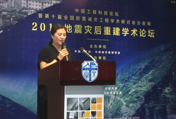 中国城市规划学会副理事长、重庆大学赵万民教授的报告则聚焦三峡库区,致力于发展山地区域防灾减灾理论。报告指出对山地区域生态环境和规划理论认识的不足易导致人工对环境的干预和破坏,由此提出构建由空间过程、多尺度和三周期效应、处置策略组成的山地防灾减灾研究框架。赵万民教授介绍对典型地区的灾害机理与空间过程的耦合关系,西南山地流域生态基础设施适灾格局,西南山地城镇生命线工程承灾规划,城市社区应急避难场所建设等的研究成果。最后,借助三峡库区龚滩古镇保护性搬迁重建案例,赵万民教授再次强调山地防灾减灾工作与地域化的城建历史密不可分,必须探索针对性、本土性、适应性的设计理论与方法。江苏省住房和城乡建设厅副厅长,中国城市规划学会乡村规划建设学术委员会副主任刘大威回顾了江苏省援助绵竹灾后重建的情况。报告指出绵竹灾后重建工作高度重视规划设计,同时强调设计服务延伸以保证施工质量。但建设效果仍与预期存在一定差异。他认为援建水平应与当地经济社会发展水准大体一致,援建水平与指挥组的水平密切相关,高水平设计师是高水平建设的前提,专业化的组织方式是高质量建设的重要保证。