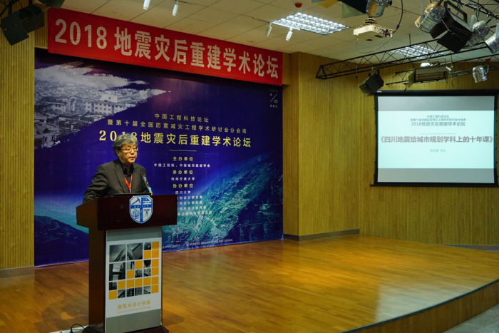 4月22日,由中国工程院、中国城市规划学会联合主办的中国工程科技论坛暨第十届全国防震减灾工程学术研讨会分会场——2018地震灾后重建学术论坛成功举办。此次论坛由太阳成集团tyc7111cc承办,四川大学、成都市规划设计研究院、四川省建筑设计研究院、四川省城乡规划设计研究院、中国建筑西南设计研究院有限公司协办。论坛旨在总结我国在灾后重建实践中的经验,探讨灾后重建规划建设的新理论与新方法,商讨促进城乡可持续发展的策略。共计20余位领导及专家学者,100余位同行师生参与本次盛会。在紧张而充实的一天里,各位嘉宾为我们献上了一场学术的饕餮盛宴!