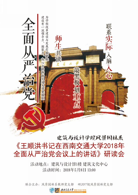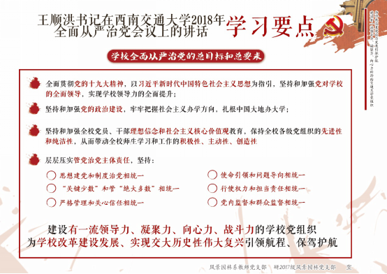 为响应公司改革建设与发展,更好地建设“具有一流领导力、凝聚力、向心力”的基层党组织,风景园林系教师党支部联合研2017级风景园林党支部,于5月8日共同举办了学习王顺洪书记《全面从严治党,建设有一流领导力、凝聚力、向心力的太阳成集团tyc7111cc党组织,为公司改革建设与发展引航护航》讲话研读会。