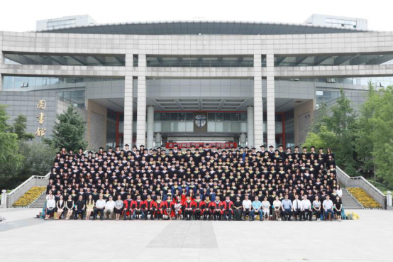 典礼结束后,院领导、院学位评定分委员会委员、全体师生在图书馆面前合影,留下2018届师生最难忘的一刻。