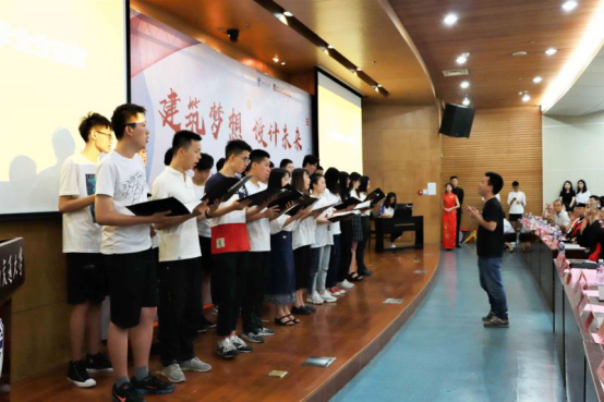 最后公司橙合唱团为毕业生献唱《大鱼》及《那些花儿》随着歌声同学们挥舞着自己手机的电筒,为所有毕业生祝福,全体合唱校歌《文轨车书郅大同》。在热烈的欢呼声和鼓掌声中,建筑与设计公司2018届毕业典礼暨授位仪式圆满落下帷幕。