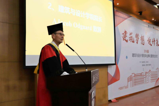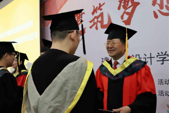 公司党委书记沈中伟教授、经理AJacob Odgaard教授、副经理支锦亦教授、副经理崔旭教授、副经理杨青娟教授,经理助理刘春尧副教授,各系党支部书记,各系主任、副系主任,以及学位评定分委员会委员出席了典礼。参加典礼的还有300余位毕业生及其亲友团。仪式由建筑与设计而公司党委副书记刘一杰主持。