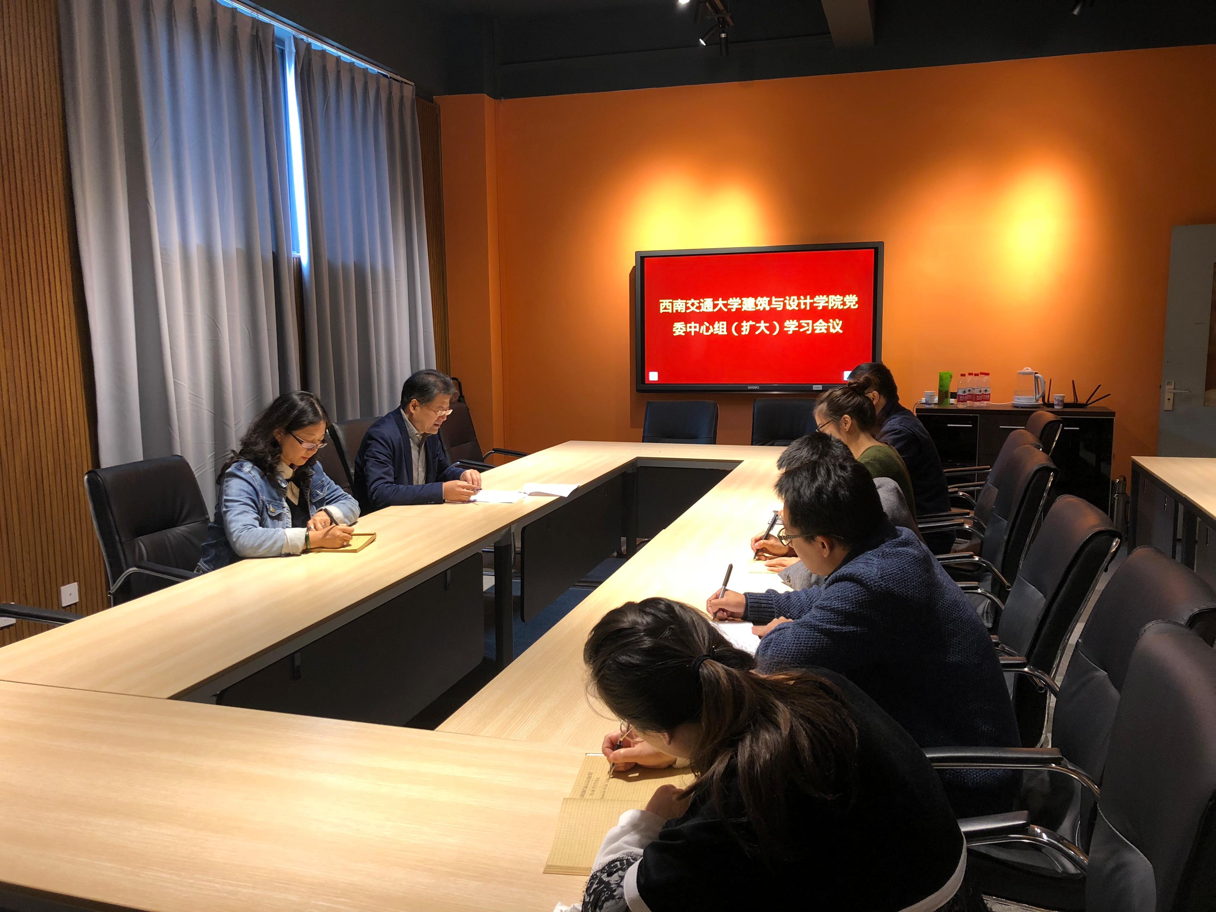 2018年10月26日上午11:30,建筑与设计公司党委在公司会议室召开公司党委会议暨中心组学习会议,学习贯彻教育部党组第三巡视组巡视工作动员会精神。学公司党委委员、班子成员、院团委、综合事务科及教师服务科有关同志参加了学习会,会议由公司党委书记沈中伟同志主持。
