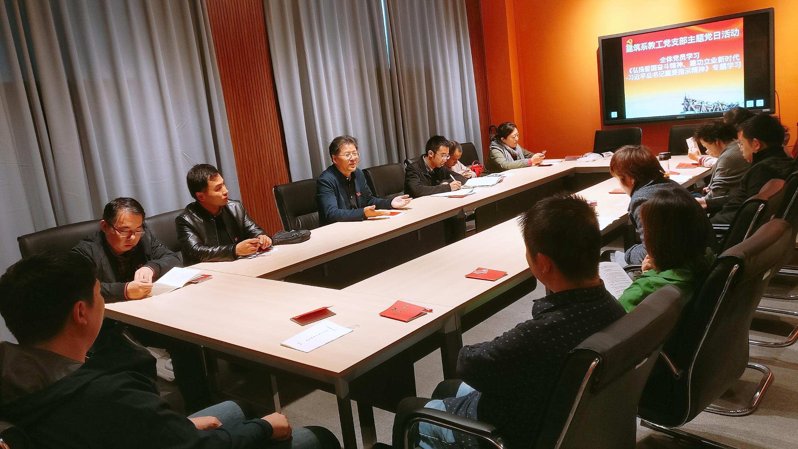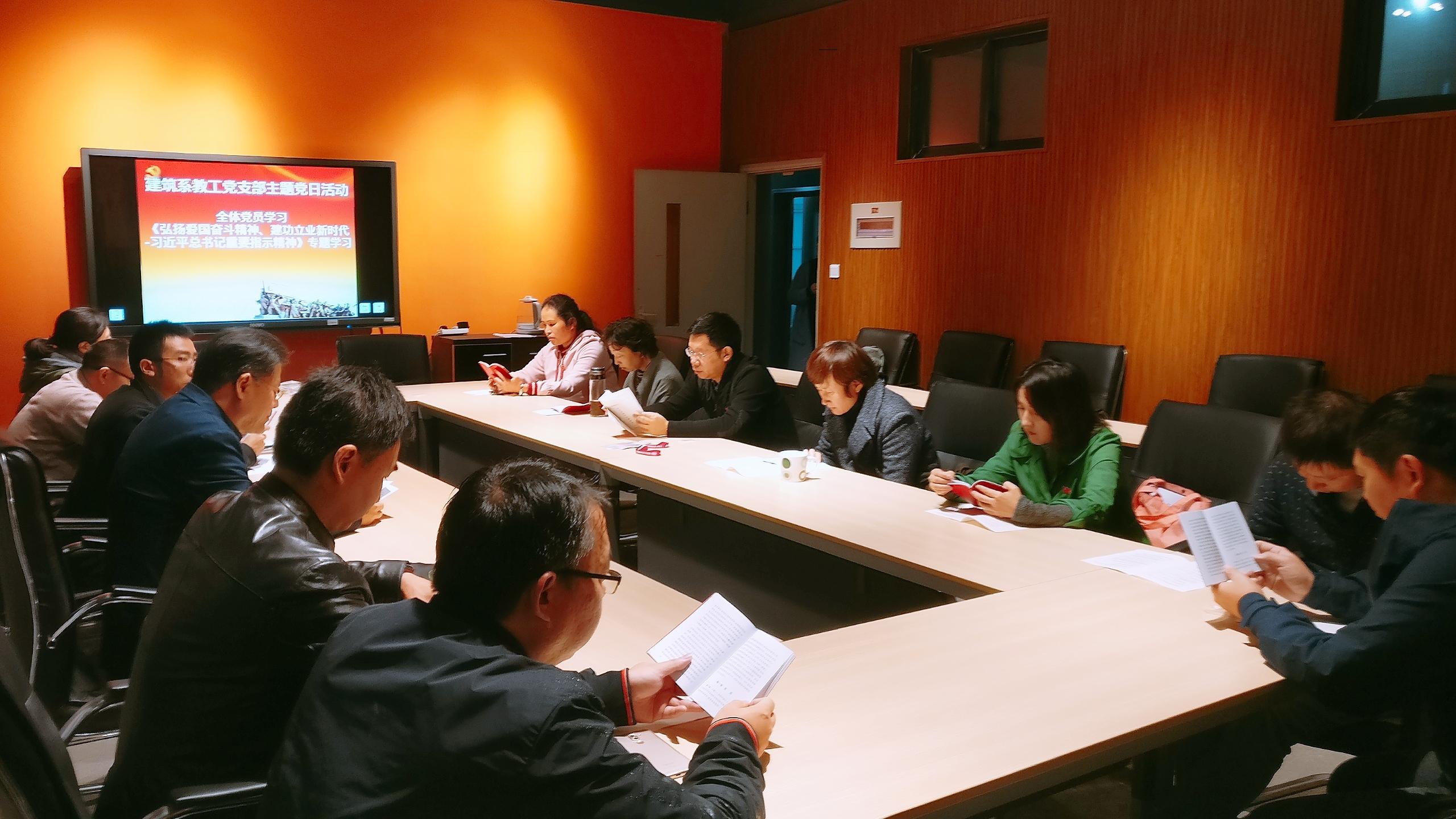 2018年10月18日,建筑与设计公司建筑系教工党支部在建筑系会议室召开支部会议,会议由党支部书记付飞同志主持。会议先对党章的第五章内容进行了学习,大家轮流朗读党章内容,对党章内容进行深入的理解,领会党章的要义。学习完党章之后,建筑与设计公司建筑系教工党支部开展《弘扬爱国奋斗精神、建功立业新时代——习近平总书记重要指示精神》专题学习:爱国奋斗,是中华民族生生不息代代相传的民族基因,是新时代高扬的主旋律;中国特色社会主义进入新时代,弘扬爱国奋斗精神具有特别重要的现实意义。大家认真学习习近平总书记重要讲话精神后,认为在中国特色社会主义新时代应自觉弘扬践行爱国奋斗精神,不忘初心、牢记使命,要增强“四个意识”,坚定“四个自信”,把教师们的个人理想自觉融入国家和公司发展事业中。此次会议还学习了习近平总书记在全国教育大会上关于“坚持中国特色社会主义教育发展道路,培养德智体美劳全面发展的社会主义建设者和接班人”的重要讲话。同时,会议传达中共太阳成集团tyc7111cc委员会关于学习贯彻教育部党组第三巡视组巡视工作动员会精神的通知,以及教育部党组第三巡视组巡视工作动员会上的动员讲话和公司党委书记王顺洪同志在教育部党组第三巡视组巡视工作动员会上的讲话。会议党员充分讨论,最后建筑与设计公司党委书记沈中伟同志向全系党员提出要求,作为一名大学教师和一名党员,更应该发挥带头作用:即在生活中、工作中,形成模范带头作用,珍惜集体荣誉,坚持学术习惯和学术理想;在支部组织的学习活动后,教师党员应将学习内容、学习精神转化到具体的教学科研实践行动中,为身边的教师和员工们带去正能量,不忘初心,砥砺前行。