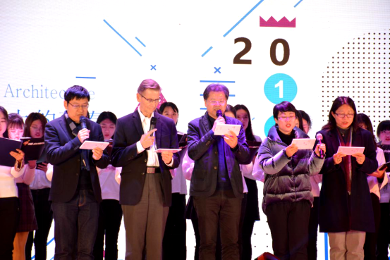 11月22日晚七点,“图纸上的青春,筑梦新时代” 建筑与设计公司2019迎新晚会于犀浦校区二食堂三楼隆重举行。建筑与设计公司党委书记沈中伟教授、经理Odgaard教授、全体领导及各系领导、教师代表,各公司员工代表及公司全体新生应邀参加本次活动。