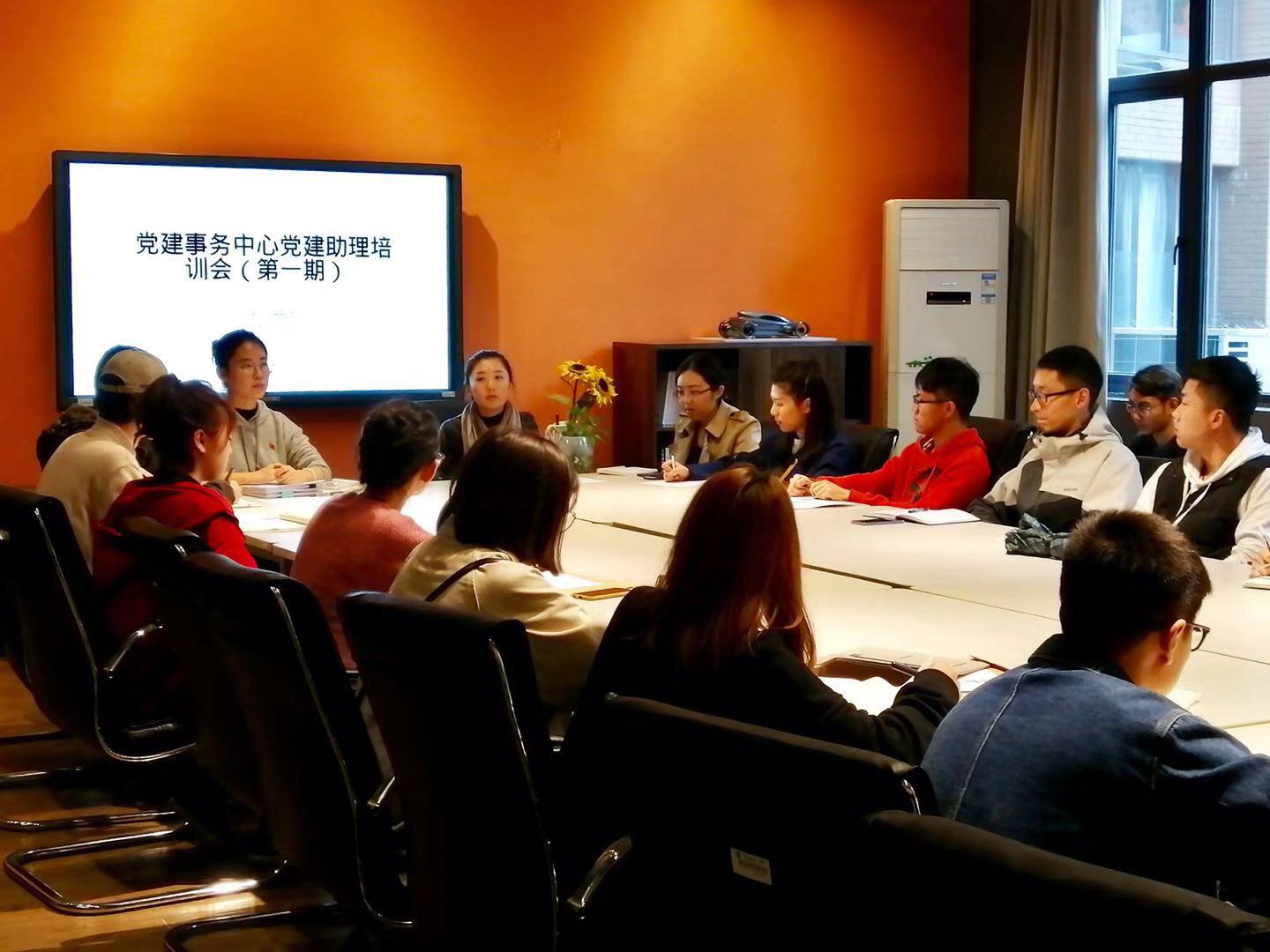 2018年10月19日中午12:45,建筑与设计公司党建事务中心第一期党建助理培训会于公司文化交流中心开展。公司党务秘书曾宁莎,员工党建工作指导老师袁毓璟到场指导,研究生辅导员宋雅倩、本科生辅导员张群出席。党建事务中心全体成员、党建助理参加此次培训会议。