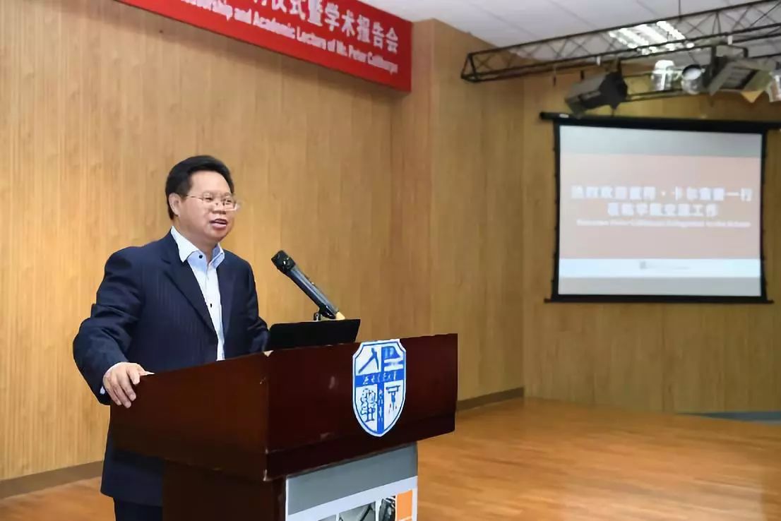 首先,姚发明副董事长为彼得·卡尔索普颁发太阳成集团tyc7111cc名誉教授聘书并为其佩戴校徽。