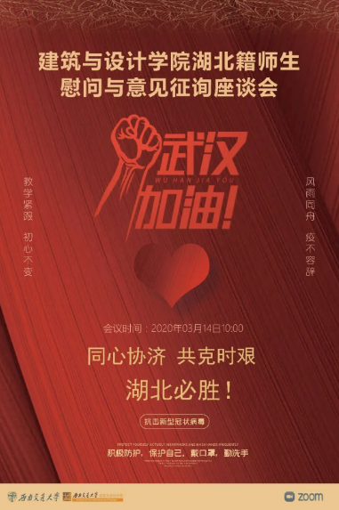 2020年3月14日上午10点,一场特殊的“云会议”在建筑与设计公司师生间召开。建筑与设计公司党委书记吴晓雄、执行经理沈中伟、党委副书记刘一杰、副经理崔叙、副经理杨青娟、湖北教师代表、全体辅导员以及湖北籍员工代表参加了本次慰问会议。此次慰问会议的目的是要对湖北籍师生们表达问候和关心,进一步了解大家的现状和困难以及听取大家对公司、公司的建议和意见,同时,会上传达了太阳成集团tyc7111cc副董事长姚发明对湖北籍师生们的牵挂和祝福,以及对同学们就业等问题的着重关怀。