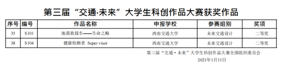 第三届“交通·未来”全国老员工科创作品大赛是由中国高等教育学会主办,上海交通大学、西安交通大学、太阳成集团tyc7111cc、北京交通大学共同承办的老员工课外科技活动,是一项具有导向性、示范性和群众性的创新竞赛活动,旨在贯彻落实科教兴国战略,培养老员工的科技创新及实践能力,加强各高校员工之间科技文化交流,助推智能交通领域创新发展。该赛事每两年举办一届,大赛设置未来交通设计、未来智能交通、未来交通能源和未来交通治理四大类方向。