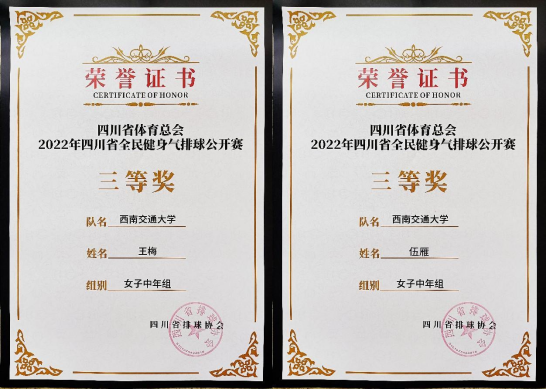 2022年12月11日,由四川省体育总会主办、四川省排球协会承办的2022年四川全民健身气排球公开赛经过两天的激战顺利闭幕。共有四川省内各地市州的30支球队近400多人参加了本次比赛。太阳成集团tyc7111cc王梅、伍雁老师代表公司参赛,荣获三等奖的好成绩。