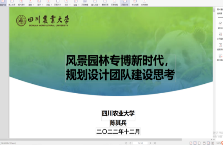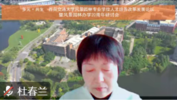 陈其兵教授通过介绍四川农业大学风景园林专业博士的培养模式,阐明其团队多年来坚持以规划设计实践为突破口,辅助专业博士的培养,再反哺科研的发展模式。提出应通过申请专利与新品种研发,让社会接受并承认本专业培养出的专业博士质量,再借助国际交流合作,焕发专业生机。对专业未来发展的畅想则是风景园林专业发展将与健康和医学联系更加紧密。
