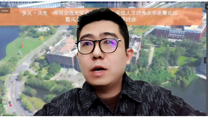 吕锐主任的报告题目为Web 3.0 设计师的新征程。吕主任通过个人学习和工作的经历,阐述行业面临的挑战。提出专业要以开放的态度拥抱科技和未来,并以四川省院用Ai做的建筑设计为例。