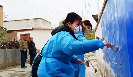 在村党支部的大力支持下,同学们克服寒冷、下雨等各种问题。从构图起形、调色到涂色,相互合作、配合默契,每一幅画都倾注同学们的心血。经过他们细致的涂绘,单调的白墙变得画面饱满,立体丰富,雅韵翩然,吸引当地居民驻足观看,小朋友们也前来和创作中的哥哥姐姐们一起学习和观赏。