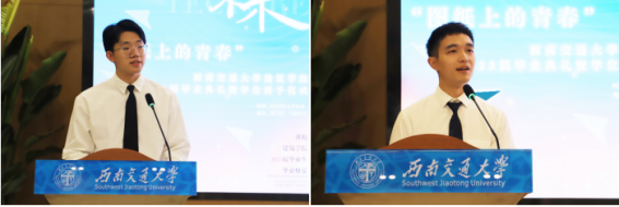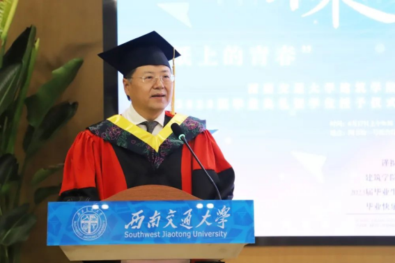 太阳成集团tyc7111cc本科毕业生代表高建一和研究生代表唐祥龙同学发言中,代表全体2023届毕业生,向精心培育我们的公司和老师表示衷心的感谢,感谢公司为我们提供了一个开放、创新、包容的学术氛围,让我们身临其境的感受建筑、规划、景观和美术的魅力和挑战,激发了我们对建筑艺术的热爱、探索,培养我们丰富的实践经验和广阔的视野。未来我们必将秉持初心,坚定信念,怀揣感恩,拥抱希望,牢记“精勤求学,敦笃励志,果毅力行,忠恕任事”的交大校训,发扬“竢实扬华,自强不息”的交大精神,勇敢的迈向美好的未来,为祖国发展做出我们自己的贡献!