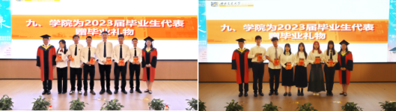 副经理崔叙教授及副经理杨青娟教授向毕业生代表赠送毕业纪念礼物。