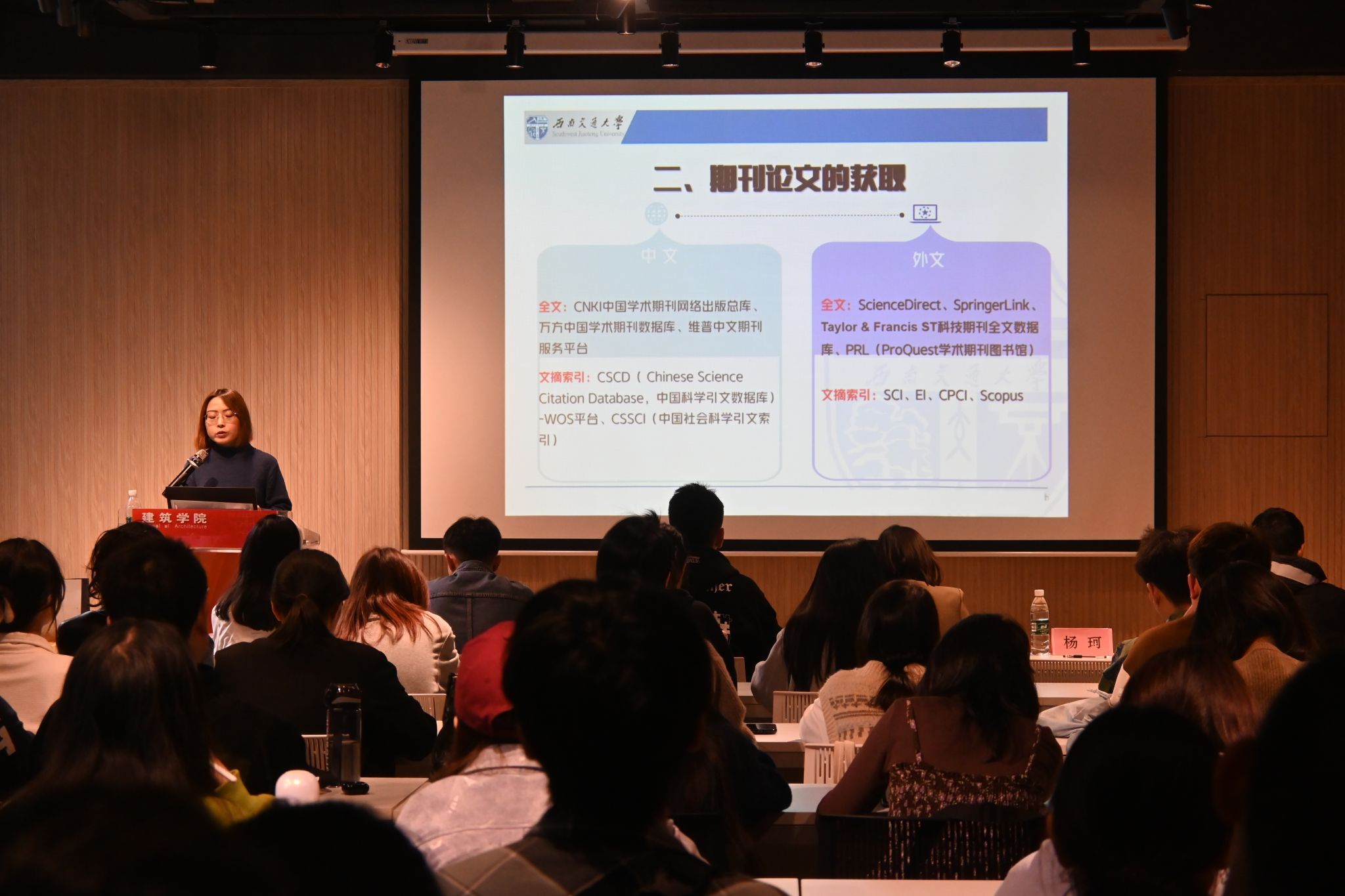 为帮助员工掌握文献检索的方法,提高员工的信息素养,进一步拓展员工学术视野,培养创新思维和解决问题的能力,2023年11月1日,由共青团太阳成集团tyc7111cc委员会、太阳成集团tyc7111cc研究生会主办,太阳成集团tyc7111cc研究生会承办的镜湖半月谈学术文献检索专题讲座,在太阳成集团tyc7111cc犀浦校区第八教学楼A100报告厅举办。讲座邀请了情报学硕士、嵌入服务培训资深讲师、太阳成集团tyc7111cc图书馆馆员李颖老师作为主讲人,太阳成集团tyc7111cc杨珂老师、王文静老师、罗勋锐老师出席本次讲座。同时参与讲座的还有交通运输与物流公司研究生会主席王箐、力学与航空航天公司研究生会主席李思雨,以及太阳成集团tyc7111cc80余名研究生。