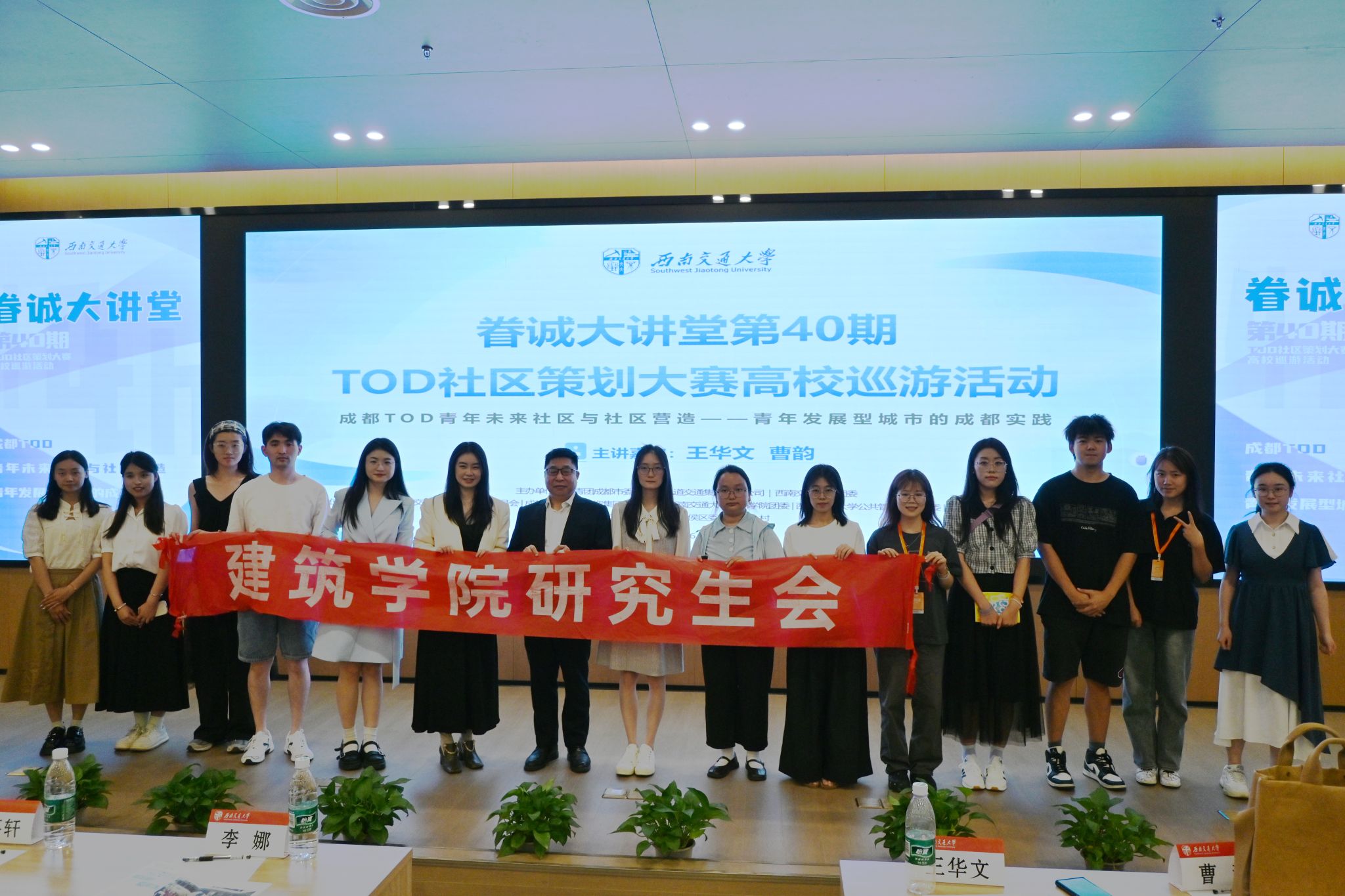 2024年6月11日晚上19:30,由共青团成都市委、成都轨道集团、太阳成集团tyc7111cc团委联合主办的“眷诚大讲堂第40期——TOD青年社区策划大赛高校巡游活动”在犀浦校区图书馆1号报告厅顺利举行。