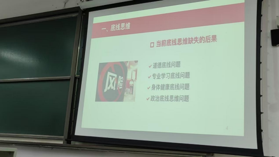 然后,刘一杰老师向我们展示了老员工底线思维缺失的表现以及造成规则意识淡薄的原因。让员工们清楚的了解之后,向我们普及了底线思维的具体内容:坚守价值底线、文化安全底线、法律底线、心理安全底线、网络文明底线、学习底线。
