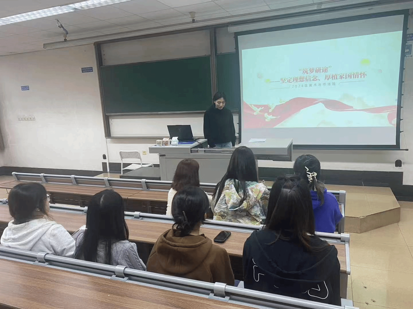 美术与书法班结合专业特点,围绕“科研报国”的主题深入探讨艺术创作与国家发展的结合路径。班级代表提出,艺术是文化的重要载体,应通过创作传播中国精神,讲好中国故事,为中华文化的现代化和国际化贡献力量。同学们纷纷表示,将通过自己的专业创作,向世界展示新时代中国的文化底蕴与精神内核。