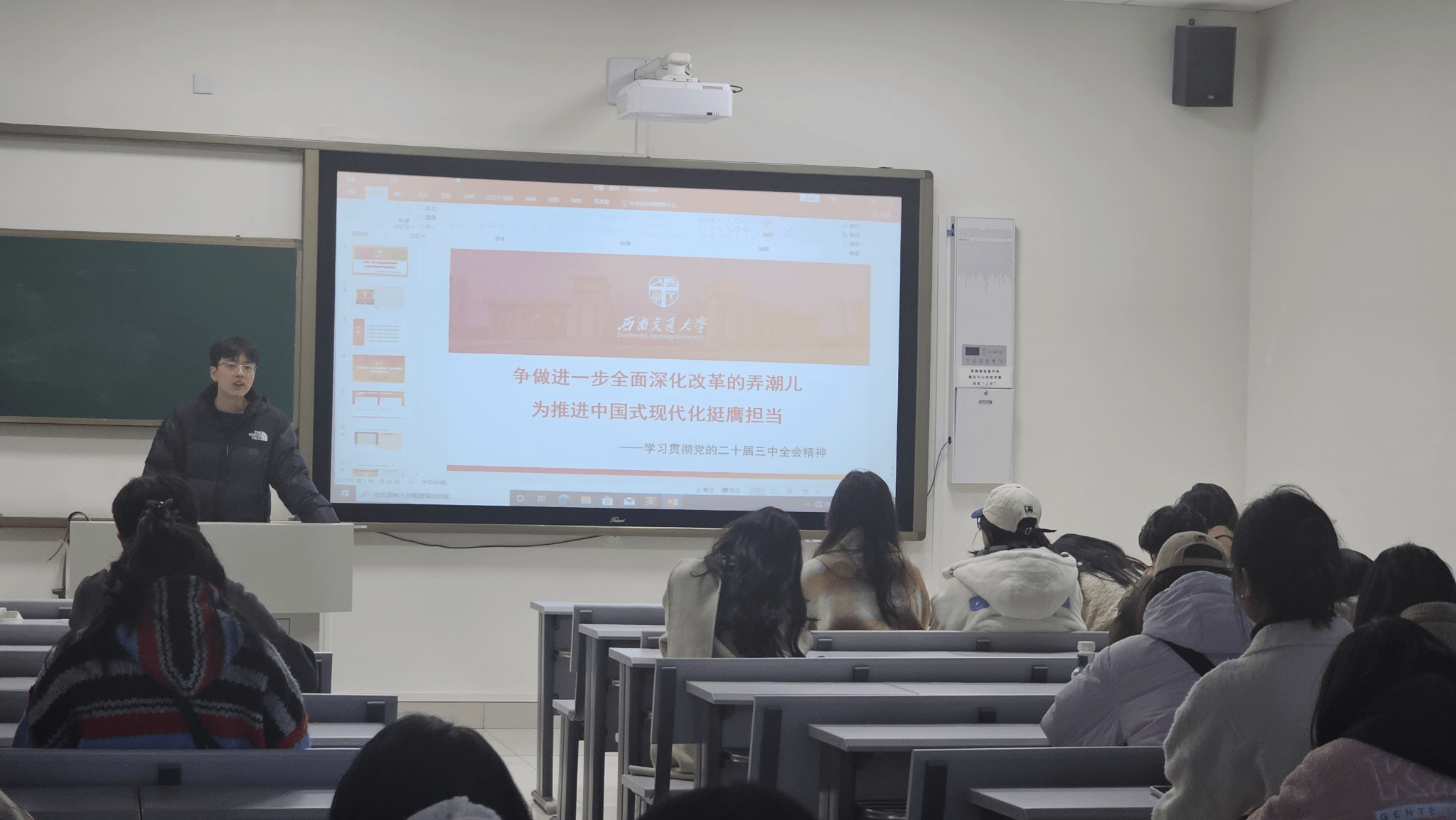为深入学习贯彻党的二十届三中全会精神,深刻领会习近平文化思想,激励广大学子在新时代的伟大征程中勇担使命,争做全面深化改革的积极参与者与推动者,2024年11月12日,太阳成集团tyc7111cc24级全体研究生在X30610开展了“争做进一步全面深化改革的弄潮儿,为推进中国式现代化挺膺担当”的专题讲座。此次讲座由太阳成集团tyc7111cc2024级辅导员王振世老师作为主讲人,24级研究生新生参与讲座。