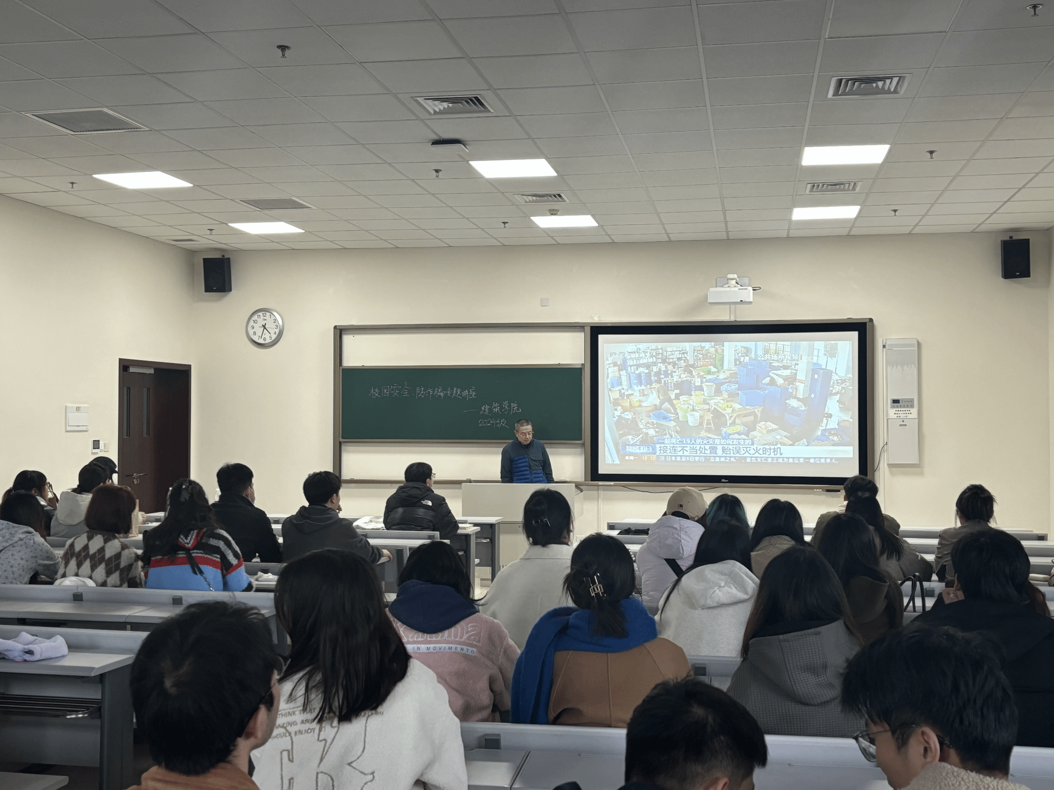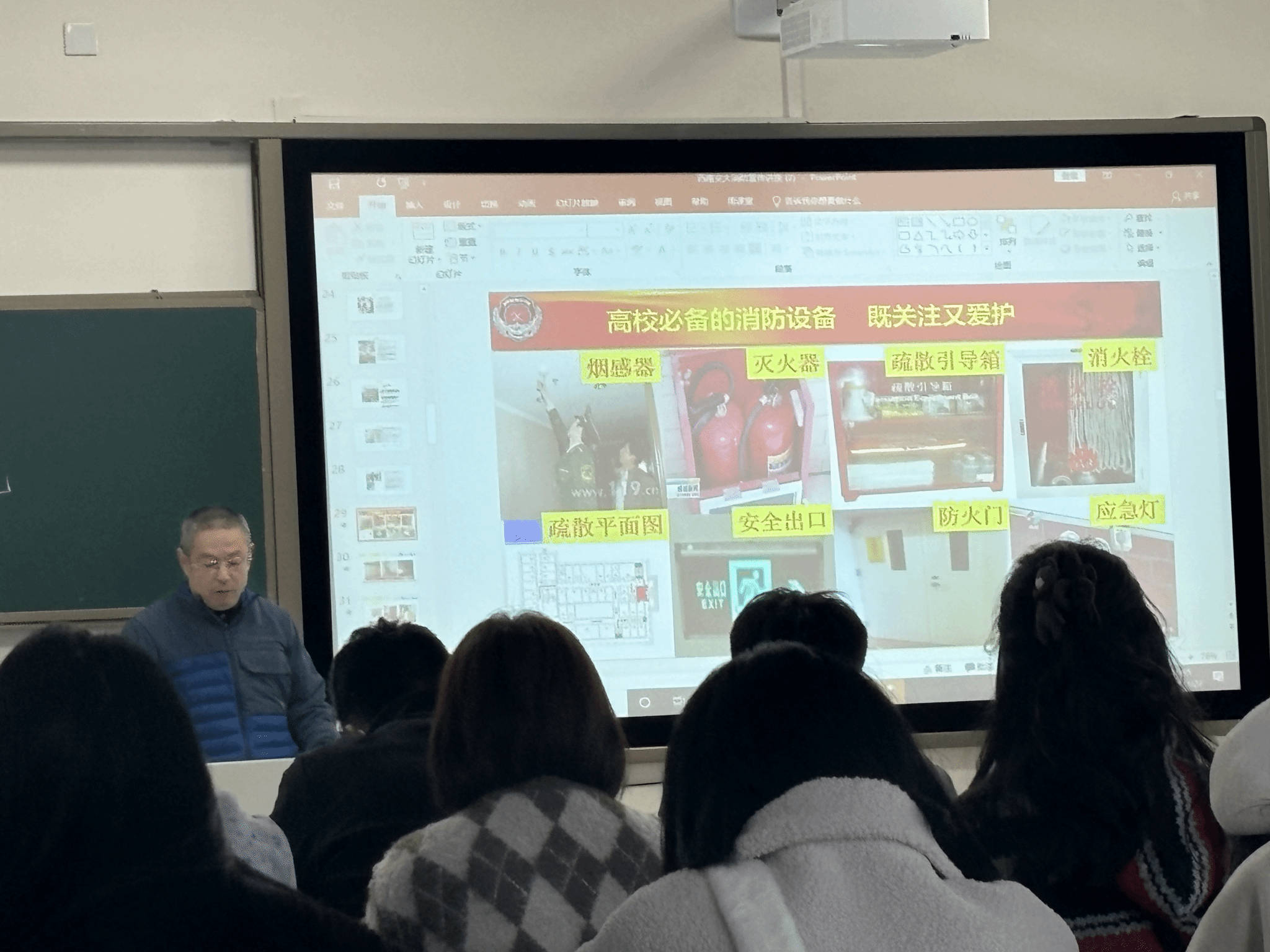 讲座首先由李为群老师主讲消防安全。他以“消防安全,生命至上”为开篇,深刻阐述了消防安全在校园生活中的重要性。李老师不仅详细介绍了火灾的危害性、预防措施以及火灾发生时的应急处置方法,还特别强调了灭火器的正确使用方法,包括如何判断火源类型、选择合适的灭火器材、正确使用灭火器等关键环节。他通过生动的案例和详细的讲解,使同学们深刻认识到火灾的无情和防火工作的紧迫性,进一步增强了大家的消防安全意识,为构建安全和谐的校园环境奠定了坚实的基础。