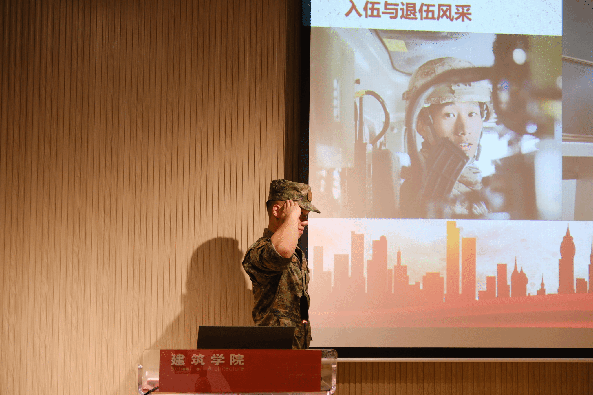 作为优秀退役老员工士兵,张一帆同学分享了自己在军队中的学习经验,更感慨通过在军队中的锻炼。精彩的分享让同学们对军营生活充满了期待,他还提醒大家要积极面对生活和学习,不断努力提高自己的专业能力和身体素质;俞冠霖同学从征兵入伍条件及要求、国防的意义及老员工当兵的优惠政策开始分享,他不仅学到了技能和知识,更重要的是增强了信心和毅力,培养起了坚强的意志,感受到军人职责的庄严和神圣。