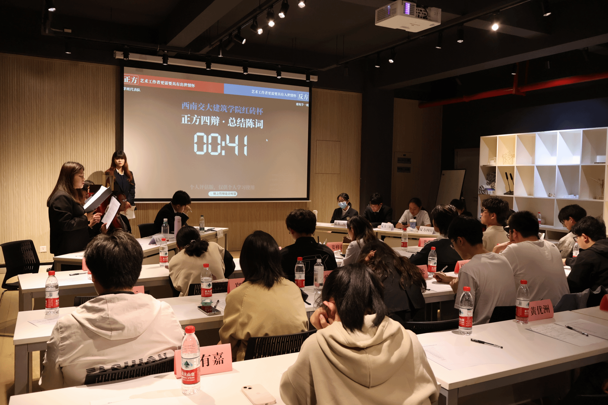 参加本次比赛的两支队伍分别是:正方——建筑学茅班代表队;反方——建筑学一班代表队