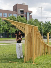 5月29日下午,研2024级建筑学专硕2班全体同学走进位于8号教学楼北侧大草坪参观“天府建造节”实体搭建展品展示区。这里陈列的是建筑学子们以空间为语言、以结构为诗篇,展现专业素养与创新精神的实践课堂。