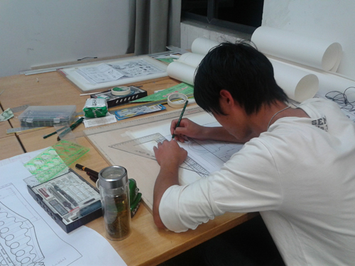 员工在进行手绘作业练习