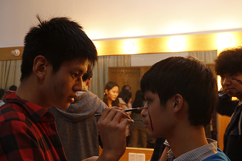 整个过程中,每一组参与者们的心脏都在接受着挑战:从卫生间中画图累倒的女生,奈何桥上披头散发的孟婆,黑暗中拐角处突然蹿出的厉鬼;带着面具,围着披风,在背后突然窜出的罗刹。参与者们每走一步都可能变得胆颤心惊,一不经意便会被吓到。