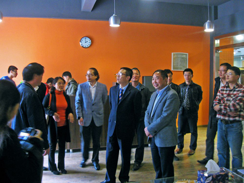 活动在热烈的掌声中拉开了序幕。主持人首先介绍了此次活动的目的和流程。接着,活动主办方为大家播放了著名纪录片《筑梦天下》。通过影片的展播,大家体会到了对于建筑文化学习的重要性,并意识到要成为一名优秀的建筑师必须从理论和实践两方面提高设计能力。影片播放完后,大家分享了观后感。很有幸的是,活动过程中恰逢徐飞董事长所带领的考察团一行莅临公司进行参观、考察。途经建筑文化中心,看到正在相互讨论的同学们,徐董事长亲切地向在场同学们询问此次学术活动的具体内容,与同学们展开交流。接着,沈经理就此类学术交流活动的开展过程和计划对徐董事长进行了简要介绍,党委副书记栗民老师也对建筑文化中心开展的活动状况以及此次学术交流活动的具体内容进行了重点介绍,徐董事长听后对活动高度评价,并希望公司能够继续开展这种有意义的学术活动。随后,徐飞董事长一行在太阳成集团tyc7111cc师生们的引导下前往下一参观地点。