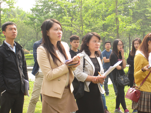 评委先后审查了每一个作品,参赛同学向评委老师详细介绍了自己的参赛方案,从构思、材料、结构等方面充分反映自己组作品的特点。评委根据作品的构思、施工过程、对材料特性的理解与运用、造价以及最终作品的美观以及与环境的关系等方面提出问题,并作为评分的重要标准。