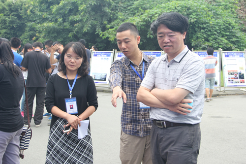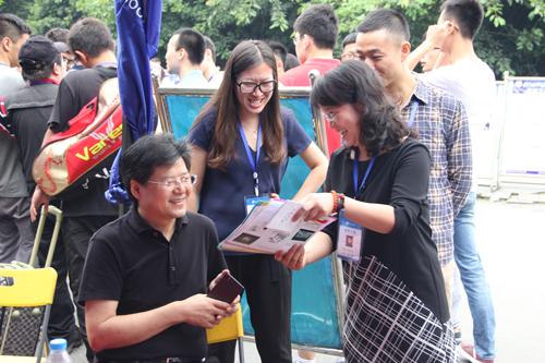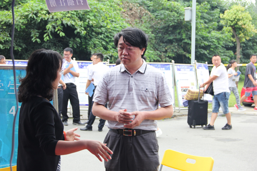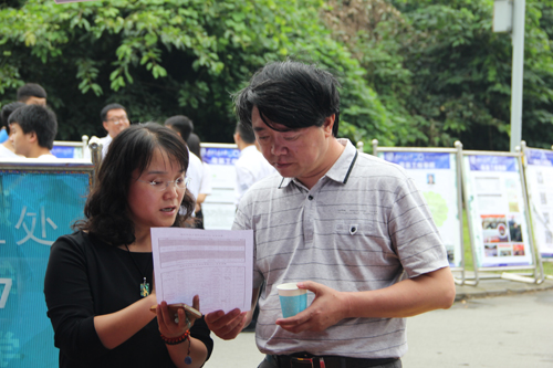 在迎新过程中,公司领导向开展迎新工作的同学们以及辅导员老师详细了解了迎新工作的相关流程,并提出了中肯的建议。辅导员方翰老师为公司领导汇报了本次迎新工作的具体安排和创新之处,讲解了用二维码宣传公司组织和传递公司信息的便利和快捷之处,获得了领导们的肯定。