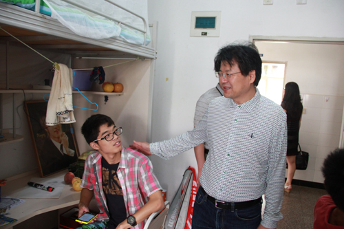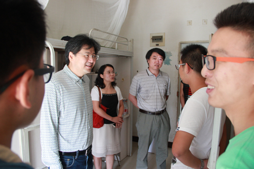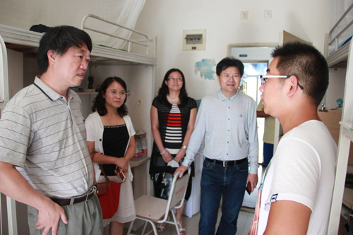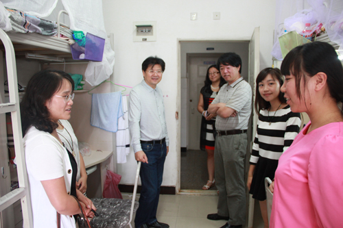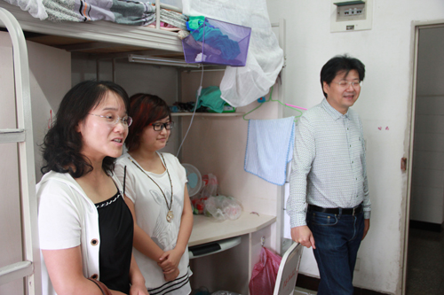 9月8日中秋节,公司领导及辅导员到2014级新生寝室看望新生。
