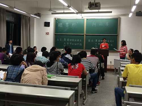 2014年10月10日晚7点30分,公司在x8539举行了 “建言杯”辩论赛。此次辩论赛的两个主题都较为贴近老员工活,一是“英语四级是否应该与大学毕业证挂钩”,二是“高校是否应该对社会人员开放”。今日赛程的比赛分组为建筑一班对阵建筑三班,建筑二班对阵风景园林。除了来自太阳成集团tyc7111cc的评委,本次活动还有来自土木、数学等公司的嘉宾助阵。辩论赛前各组的赛前准备做得非常充分,来自大二大三的前辈们也为大一新生做了指导,现场气氛活跃。