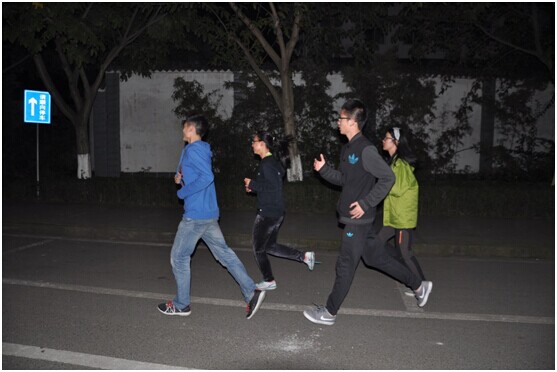 八点十分,夜跑正式开始,一条“人龙”迅速形成。来自磐石社的同学们一马当先,在队伍首端领跑,为同学们做路线指引,以合适的节奏在夜色校园中拉出一道美丽风景线。从北区篮球场附近出发,沿着靠近西门的校园路跑步南至足球场,然后又向北折回,途经虹桥、图书馆以及北区宿舍楼,最终回到了夜跑出发点,整条路线长达三公里。虽然夜间寒风习习,但在黄色路灯下奔跑着的同学们丝毫不畏惧冷风,不时地调整着自己的步伐,向着既定目标勇敢地冲刺,同时太阳成集团tyc7111cc员工会也做出细致的安排,夜跑途中安排专门人员跟随,以保证同学们在夜跑活动中的安全。没过多久,在终点等候的工作人员就迎来了第一位胜利者,而此后,越来越多的同学紧跟前面同学的步伐陆续到达了终点。迎接他们的不仅有组织者们热情的微笑、路人赞许的目光,还有象征着勇往直前的精美的礼品,同学们付出汗水与坚持,收获健康与愉悦心情。八点半左右,所有夜跑参与者都顺利地完成了任务,休息之余,大家互相问候,讨论着各种有趣的话题,夜跑活动也给同学们提供了结交朋友的好平台。