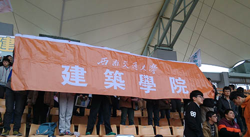看台上的拉拉队在为参赛运动员们鸣鼓助威!