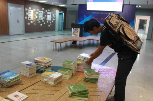 9月11日上午,活动志愿者们来到八教中庭布置活动会场,张贴海报,并且搬来了已毕业学长们赠送的各种画板等绘图工具以及各类书籍。身为学长学姐的志愿者们也希望通过这样的方式直接传达对新同学的欢迎之情,同时也能达到对绘图工具和书籍达到循环目的。